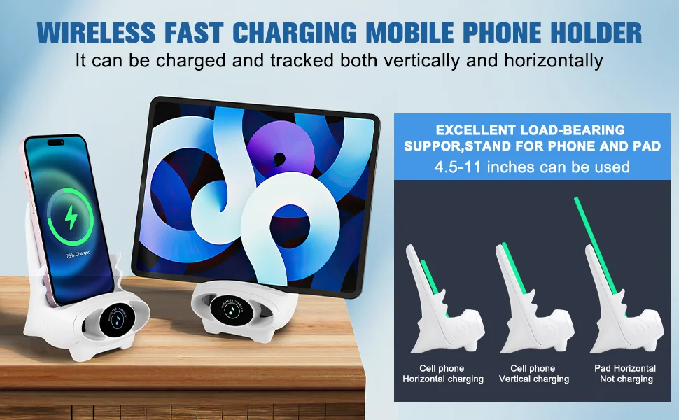 Mini Chair Wireless Fast Charger – Support Téléphone Multifonction 3-en-1 avec Haut-Parleur